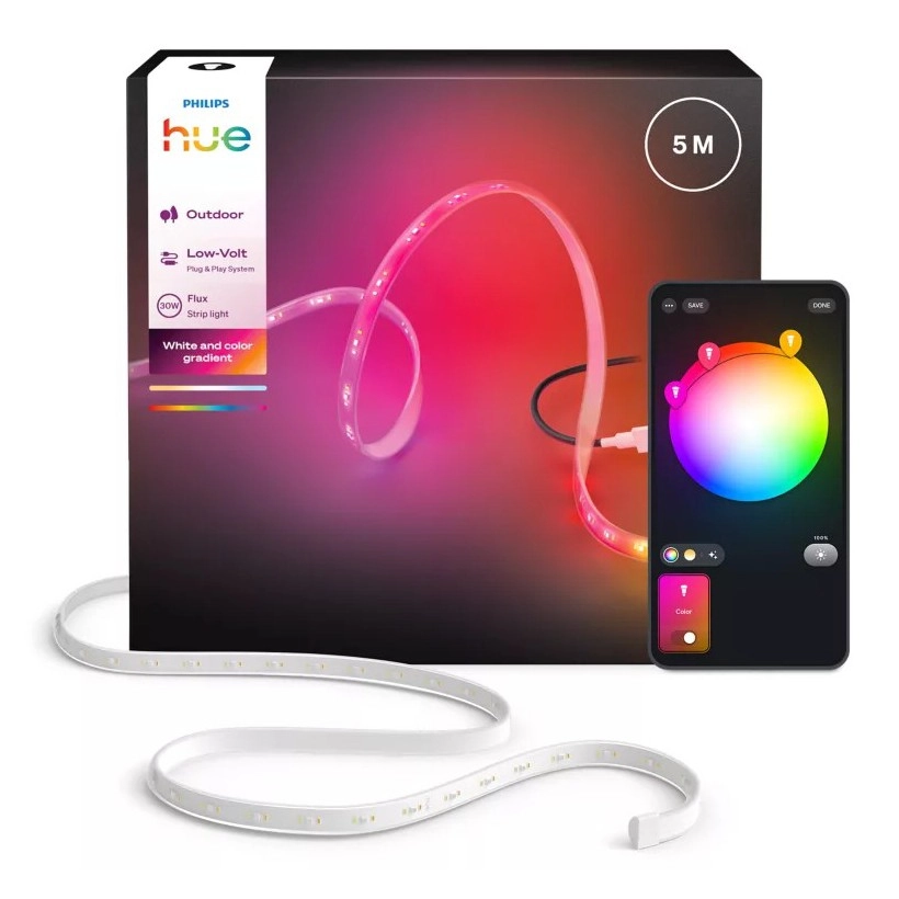 Philips - Ruban LED RGBW d'extérieur dimmable Hue FLUX 5 m, 30 W, 230 V, 2200–6500 K, IP67