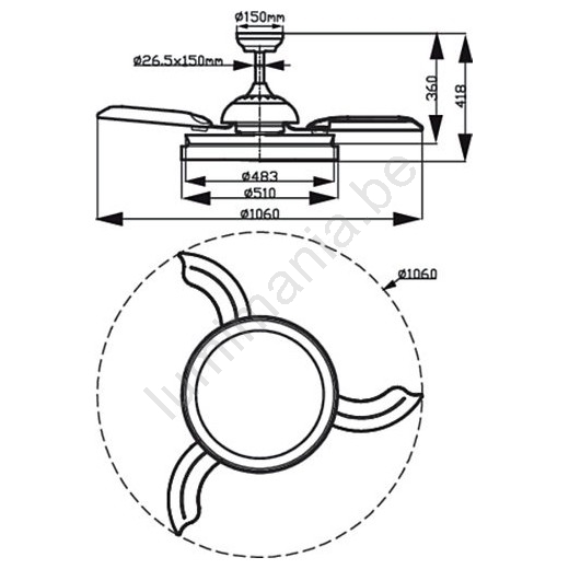 • Diamètre du ventilateur avec pales : 1060 mm.