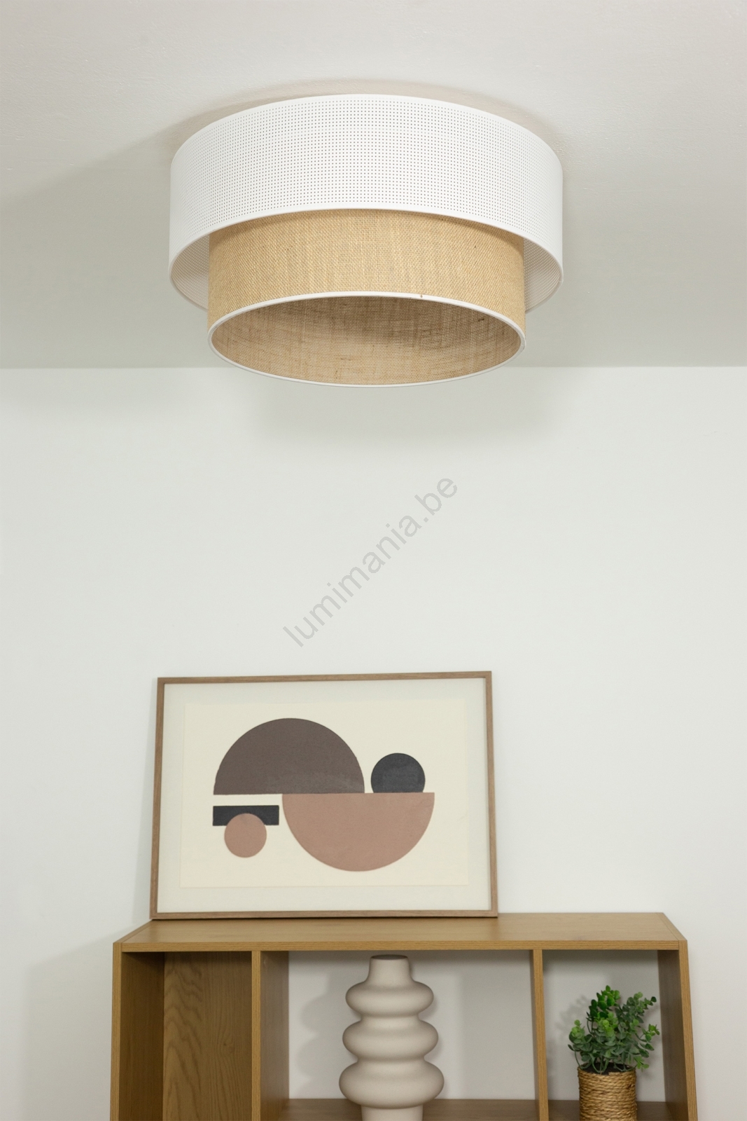 • Plafonnier BORHO 1xE27/60W/230V Ø 50 cm blanc/jute