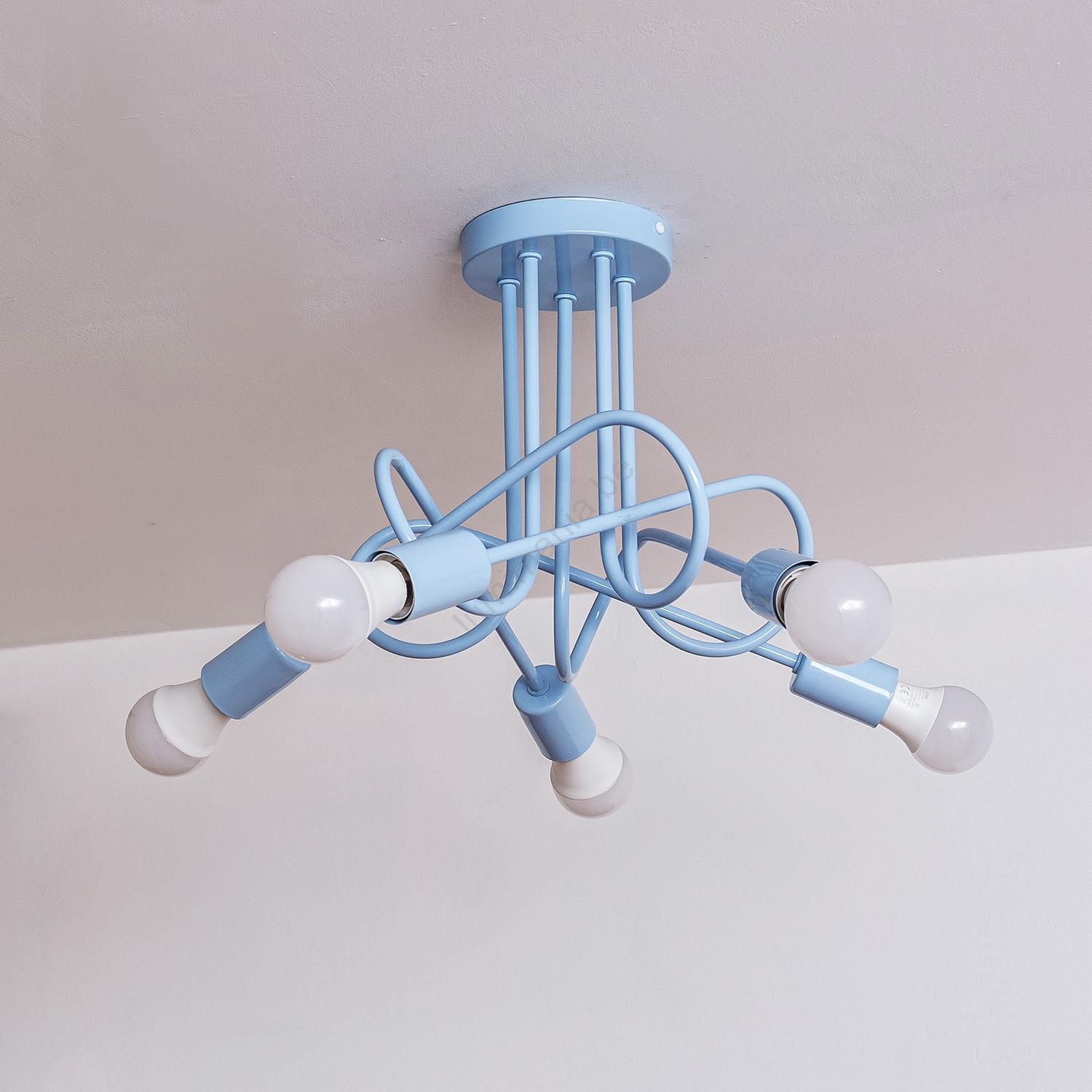 Plafonnier OXFORD 5xE27/15W/230V, bleu caractérise un design agréable et fonctionnel.  Une ampoule à culot E27 convient pour ce luminaire. Ici, vous pouvez acheter d'autres ampoules à des prix avantageux. Vous aurez un ajout intéressant dans votre intérieur.
