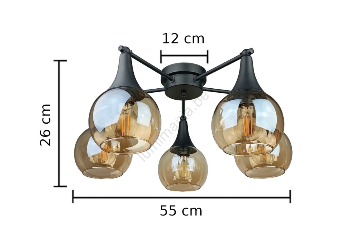 Plafonnier STAR 5xE27/60W/230V noir/fumé beige caractérise un design agréable et fonctionnel.  Une ampoule à culot E27 convient pour ce luminaire. Ici, vous pouvez acheter d'autres ampoules à des prix avantageux. Vous aurez un ajout intéressant dans votre intérieur.