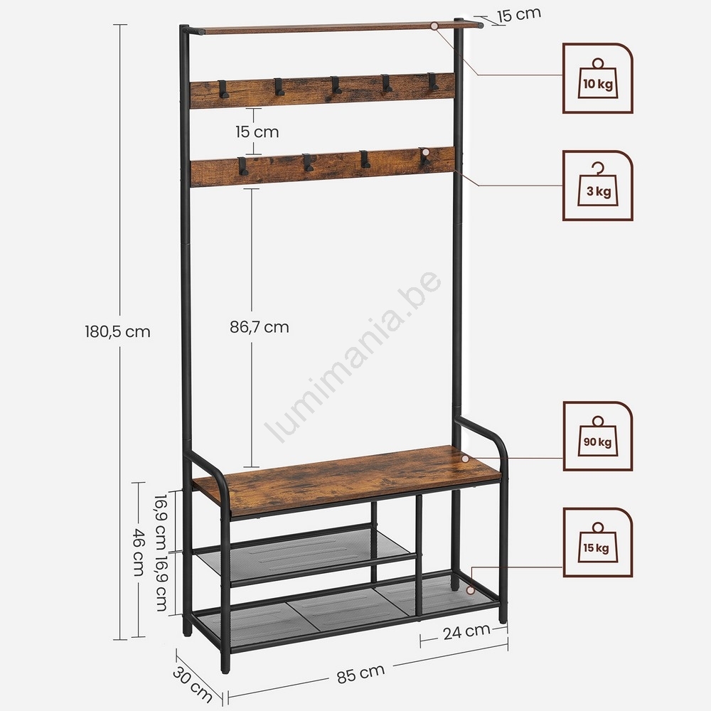 • Apportez à votre intérieur le charme du bois et la robustesse du métal avec ce porte-manteau au design industriel.