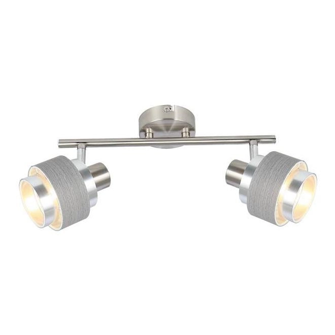 Le spot double Basil se distingue par son design moderne et élégant ainsi que par ses couleurs. Ce luminaire mural en métal et plastique, avec sa combinaison de couleurs en chêne argenté chromé satiné, est particulièrement remarquable grâce à sa tête composée d’éléments cylindriques et à son abat-jour avec un cache en chêne. Le luminaire Basil peut être installé dans plusieurs pièces : vous pouvez le placer dans votre salon, chambre, bureau ou couloir – avec son design attrayant, il sera un complément stylé à votre intérieur. Si vous le placez dans votre chambre ou votre salon, il est conseillé d’opter pour une lumière blanche chaude, qui mettra en valeur une atmosphère intime et chaleureuse dans votre maison. Ce spot peut être utilisé avec deux sources lumineuses d’une puissance maximale de 10 W chacune, avec des douilles de type E14. Les dimensions du luminaire Basil équipé d’un socle décoratif rond sont : largeur 85 mm, distance par rapport au mur 150 mm. Ce modèle est livré sans ampoules.