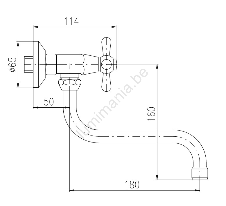 • Mitigeur mural pour évier/lavabo avec bec rond de 180 mm.