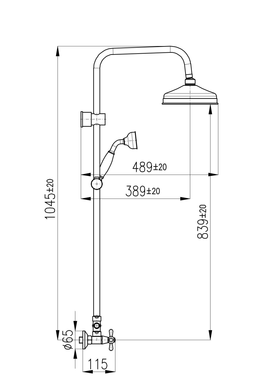 • L'ensemble comprend : le mitigeur de douche, une douchette à main en métal (Ø 76 mm), une douche de tête en métal (Ø 200 mm), un flexible de douche en plastique (1500 mm), une barre de douche avec support coulissant et inverseur céramique.