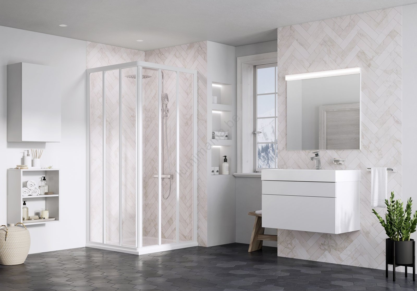 • Le cadre blanc, associé au verre transparent, confère à la cabine un aspect moderne et intemporel et garantit une longue durée de vie.
