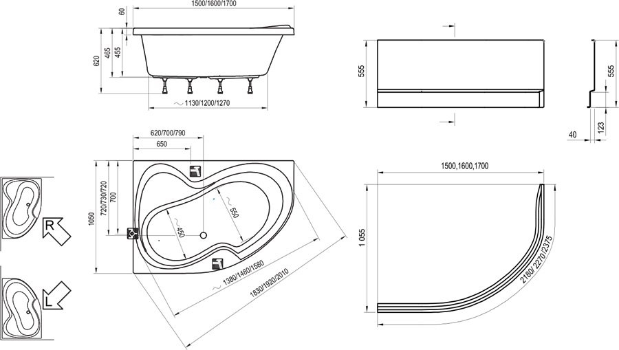 Baignoires, Baignoires asymétriques, Baignoires d'angle, Marques, Ravak, Salle de bains