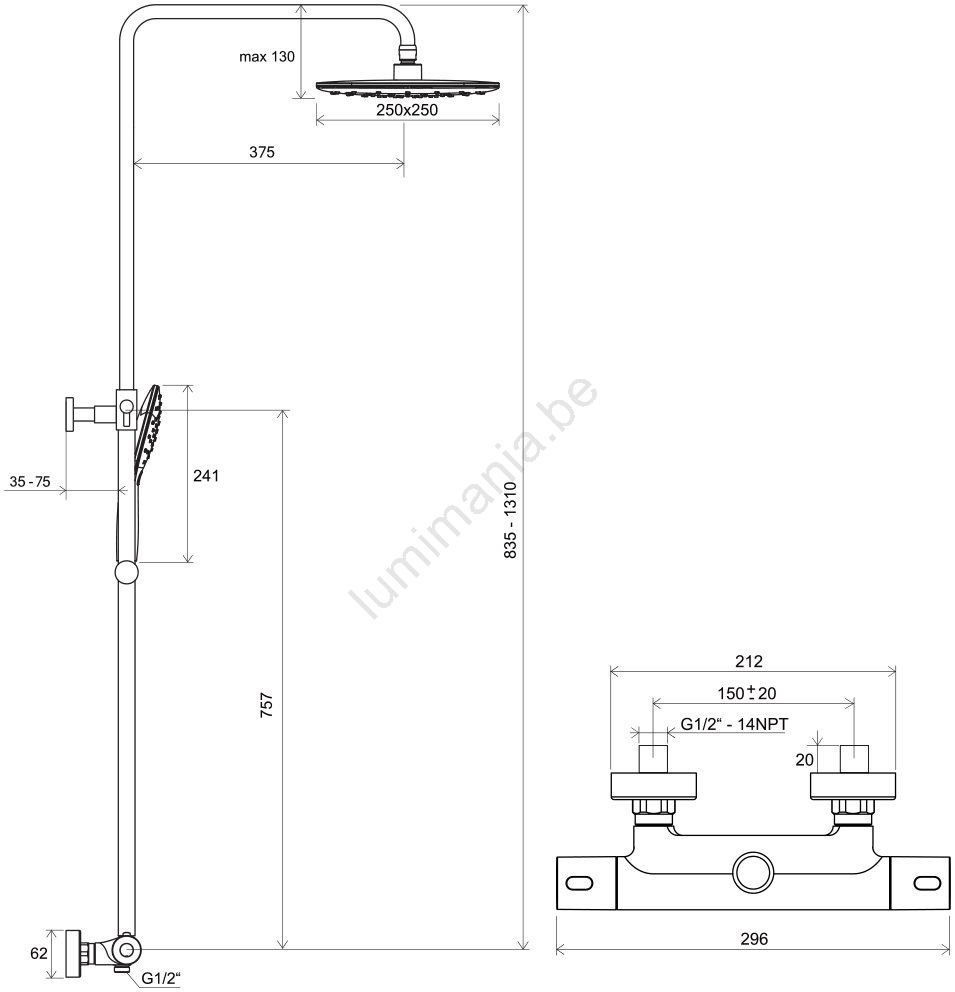 • La colonne de douche convient pour l'installation dans toutes les cabines de douche.