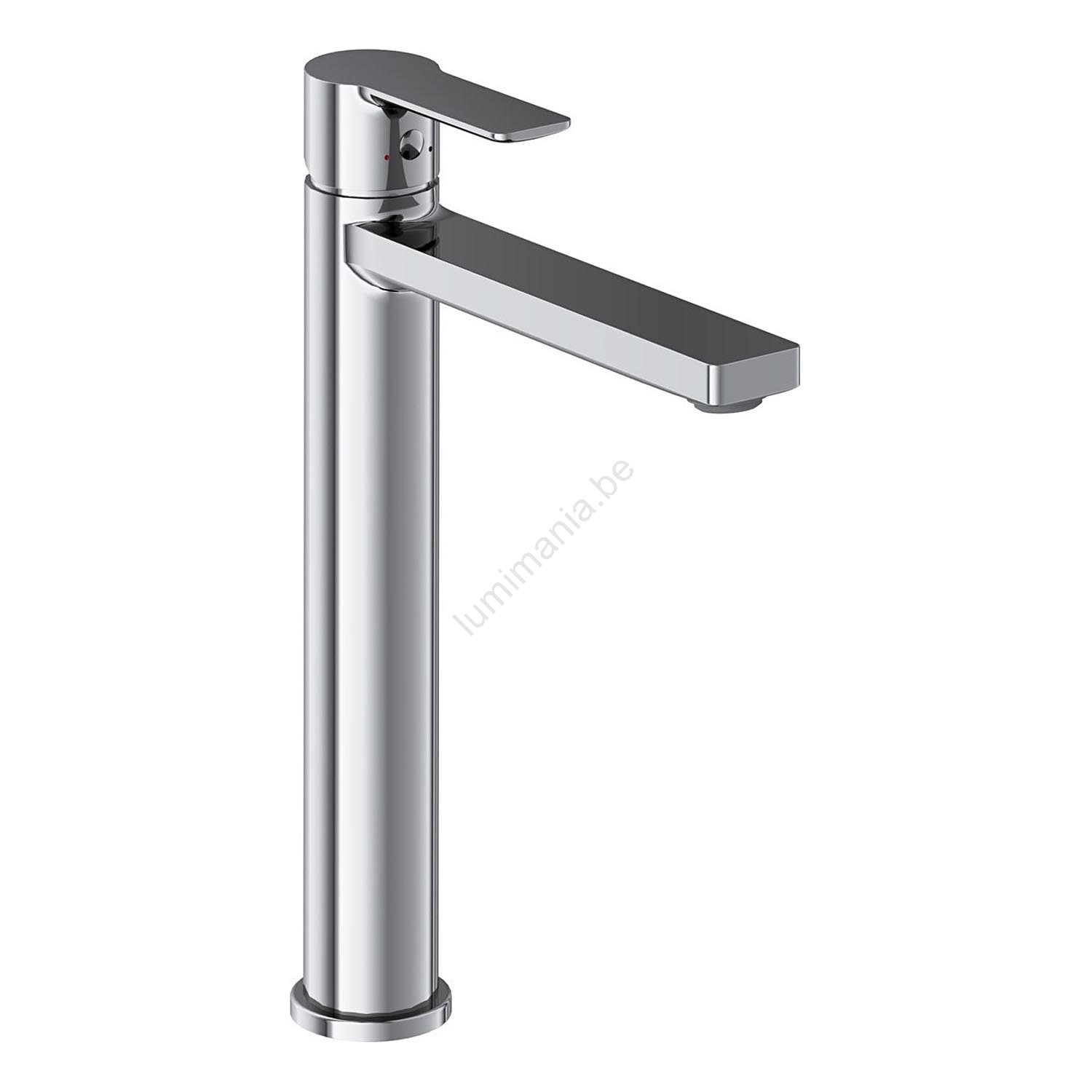 • Le mitigeur pour lavabo Solar en finition chrome brillant présente une hauteur extra-longue de 290 mm, idéal pour les vasques à poser.