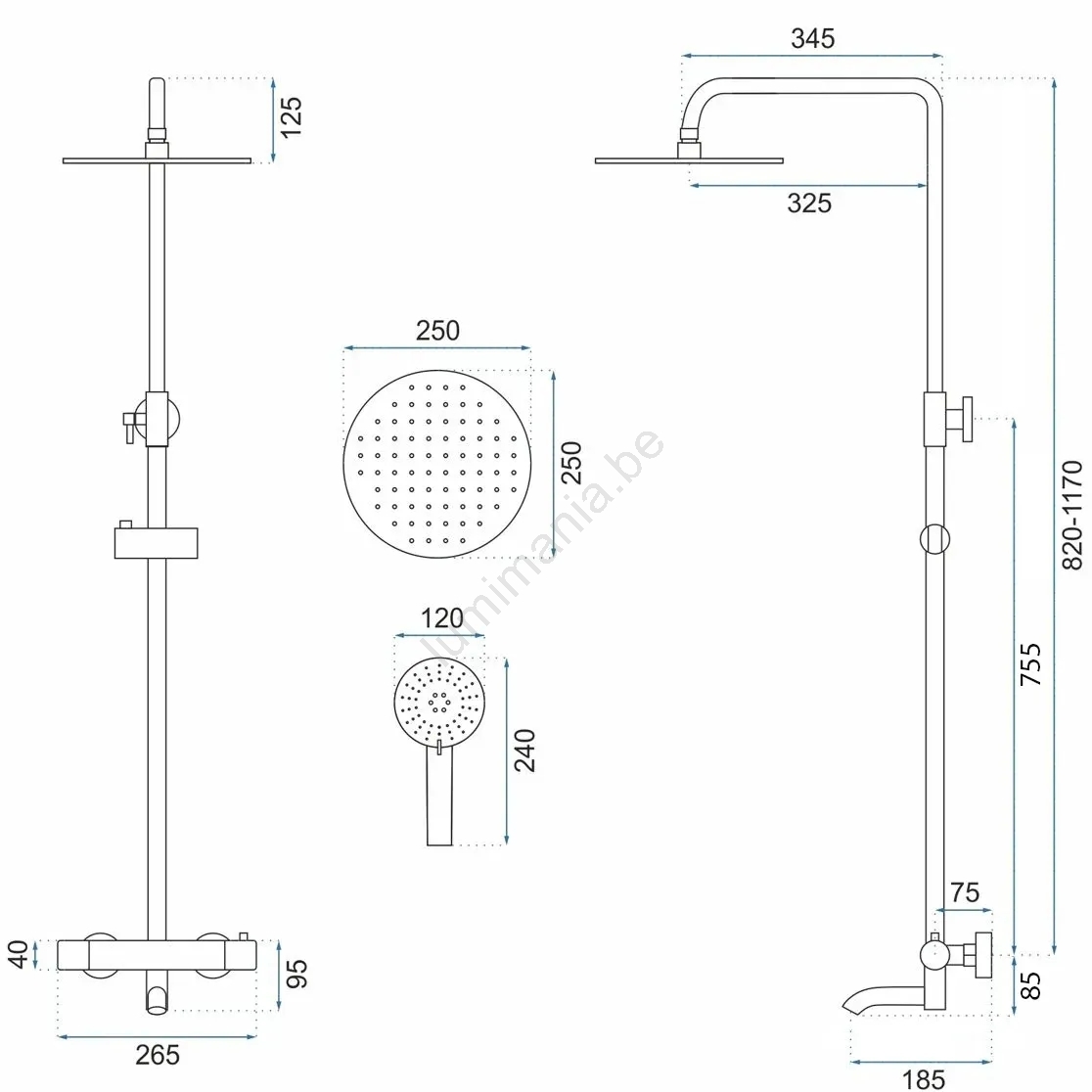 REA-P8807 - Ensemble de douche LUNGO avec mitigeur thermostatique, finition cuivre brossé