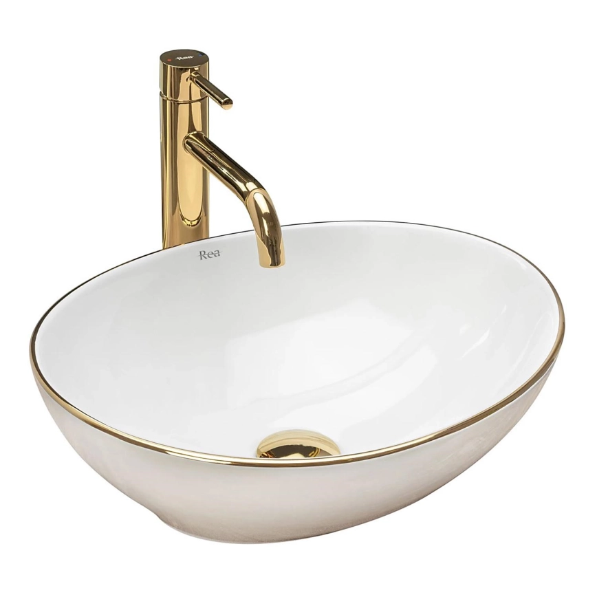• REA-U3287 - Vasque à poser SOFIA 34,5x41 cm céramique/blanc brillant/doré