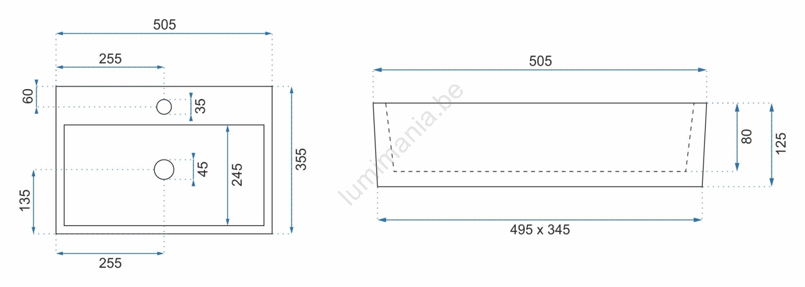 REA-U5000 - Vasque à poser VALERIA 35,5x50,5 cm en céramique, blanc brillant