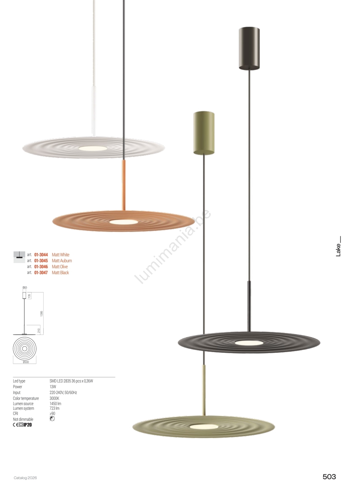 • Redo 01-3044 - Suspension LED sur câble LAKE LED/13W/230V CRI 90 Ø 50 cm blanche