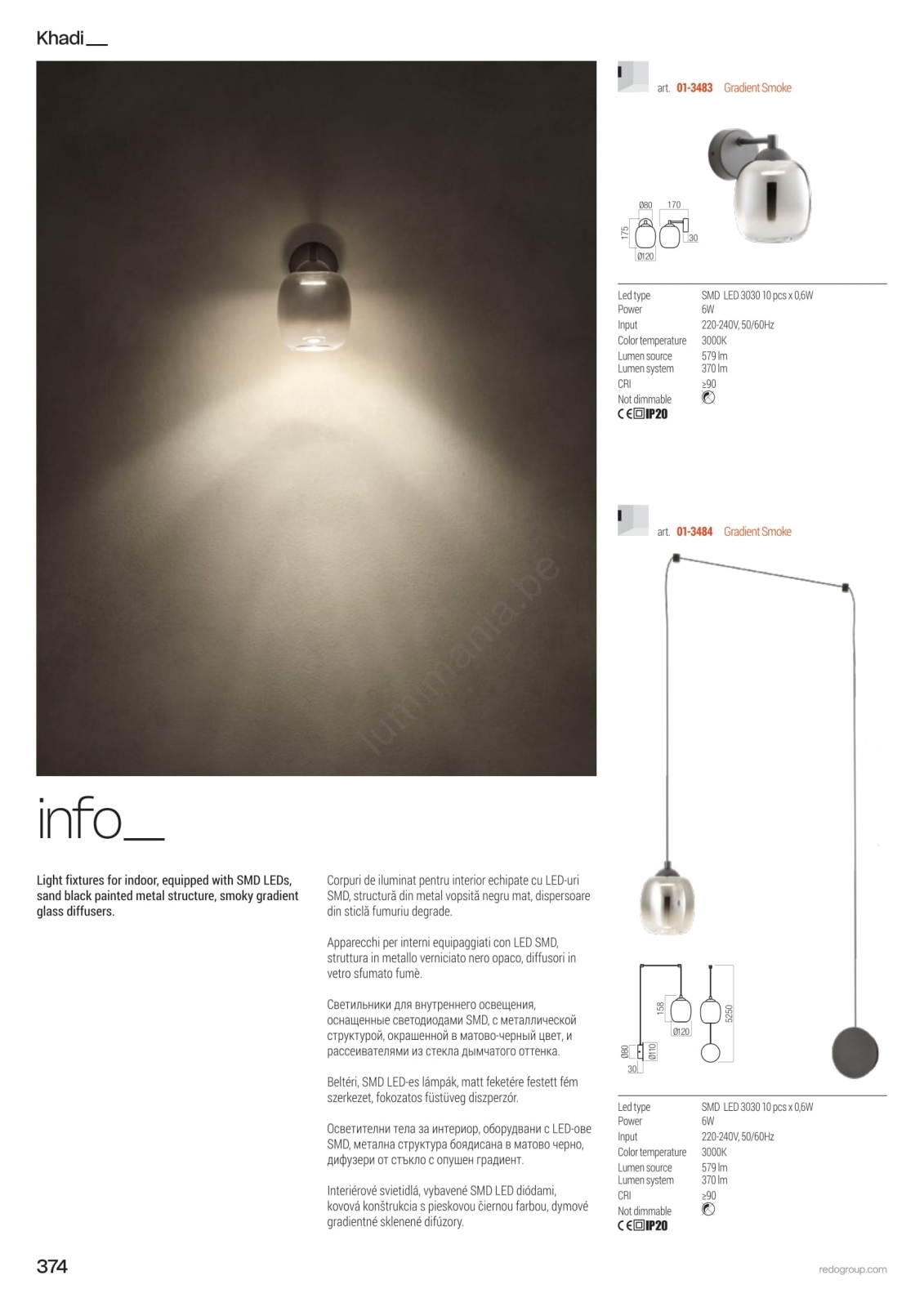 Redo 01-3490 - Suspension LED dimmable sur câble KHADI 5xLED/5,2W/230V IRC 90 noir/fumé