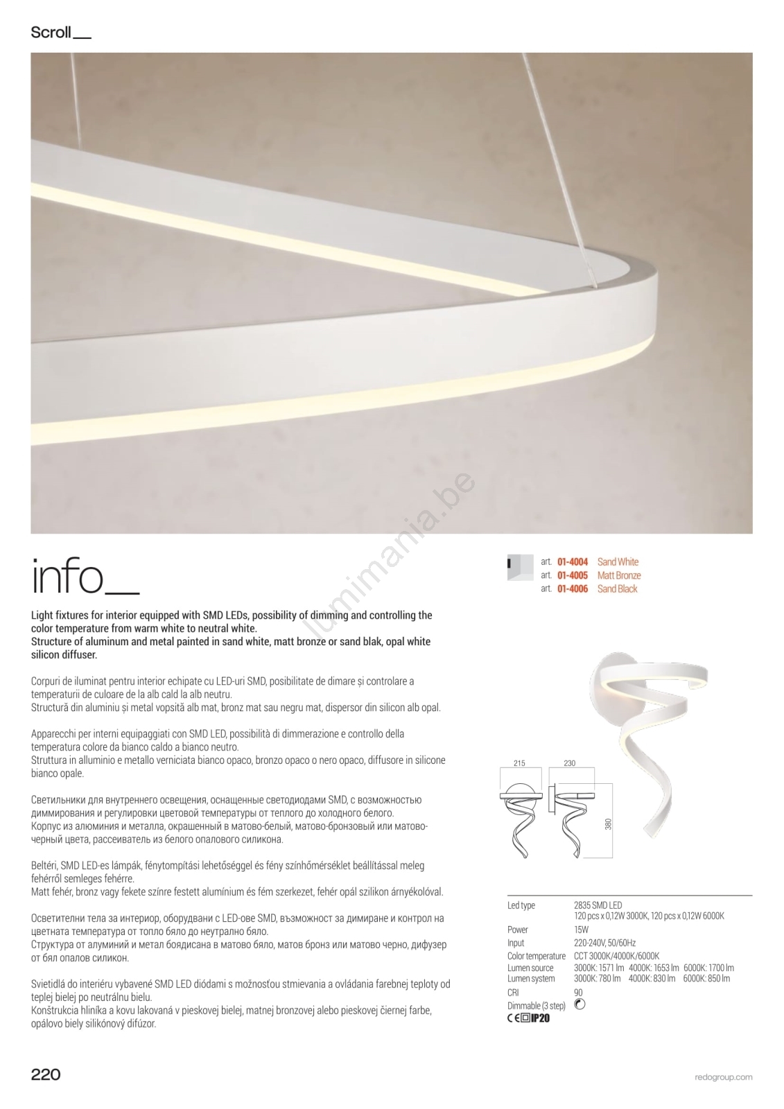 • Redo 01-4281 - Lampadaire LED dimmable SCROLL LED/30W/230V 3000K/4000K/6000K IRC 90 blanc