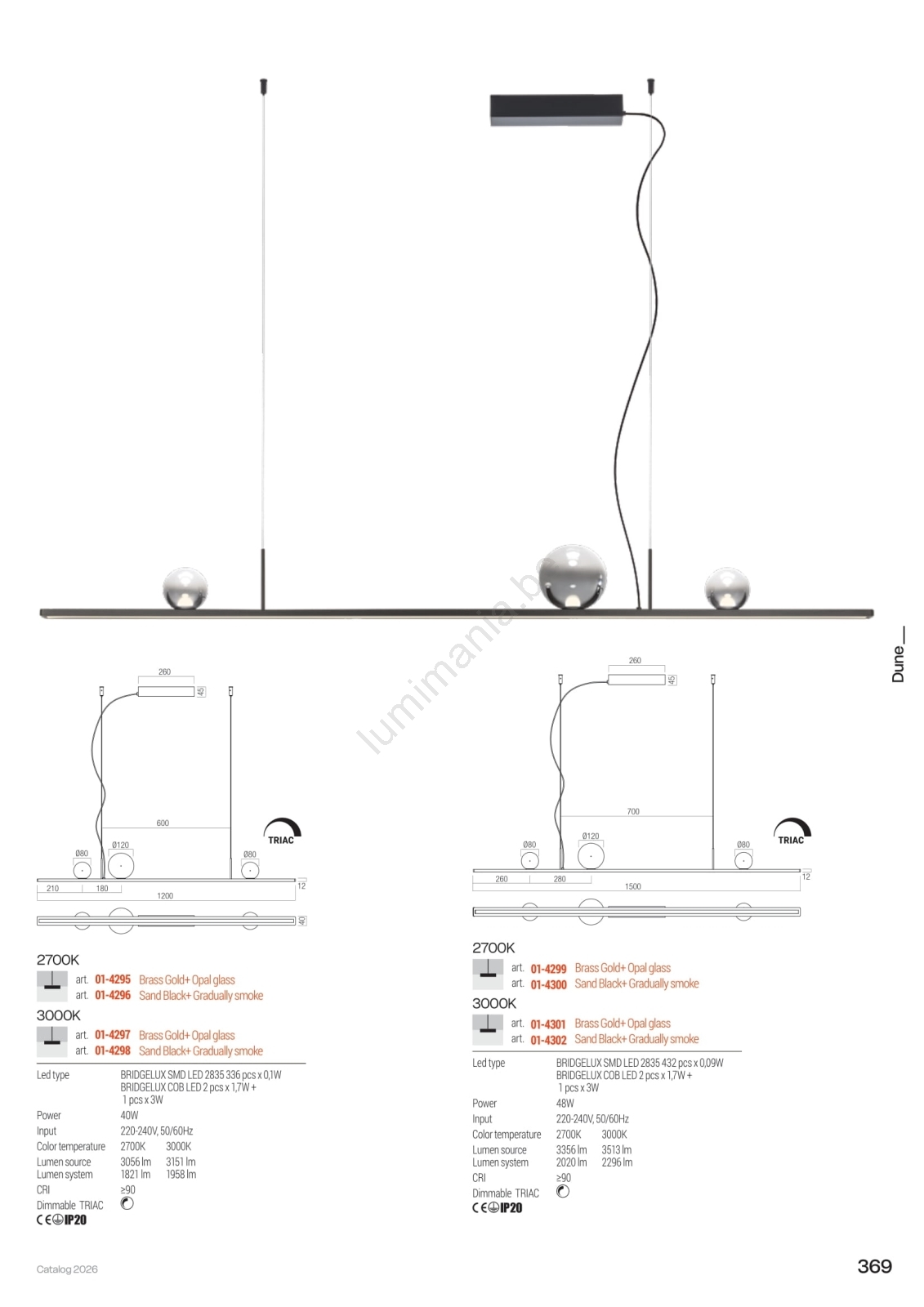 • Redo 01-4302 - Suspension LED dimmable sur câble DUNE LED/48W/230V 3000K IRC 90 noir/fumé