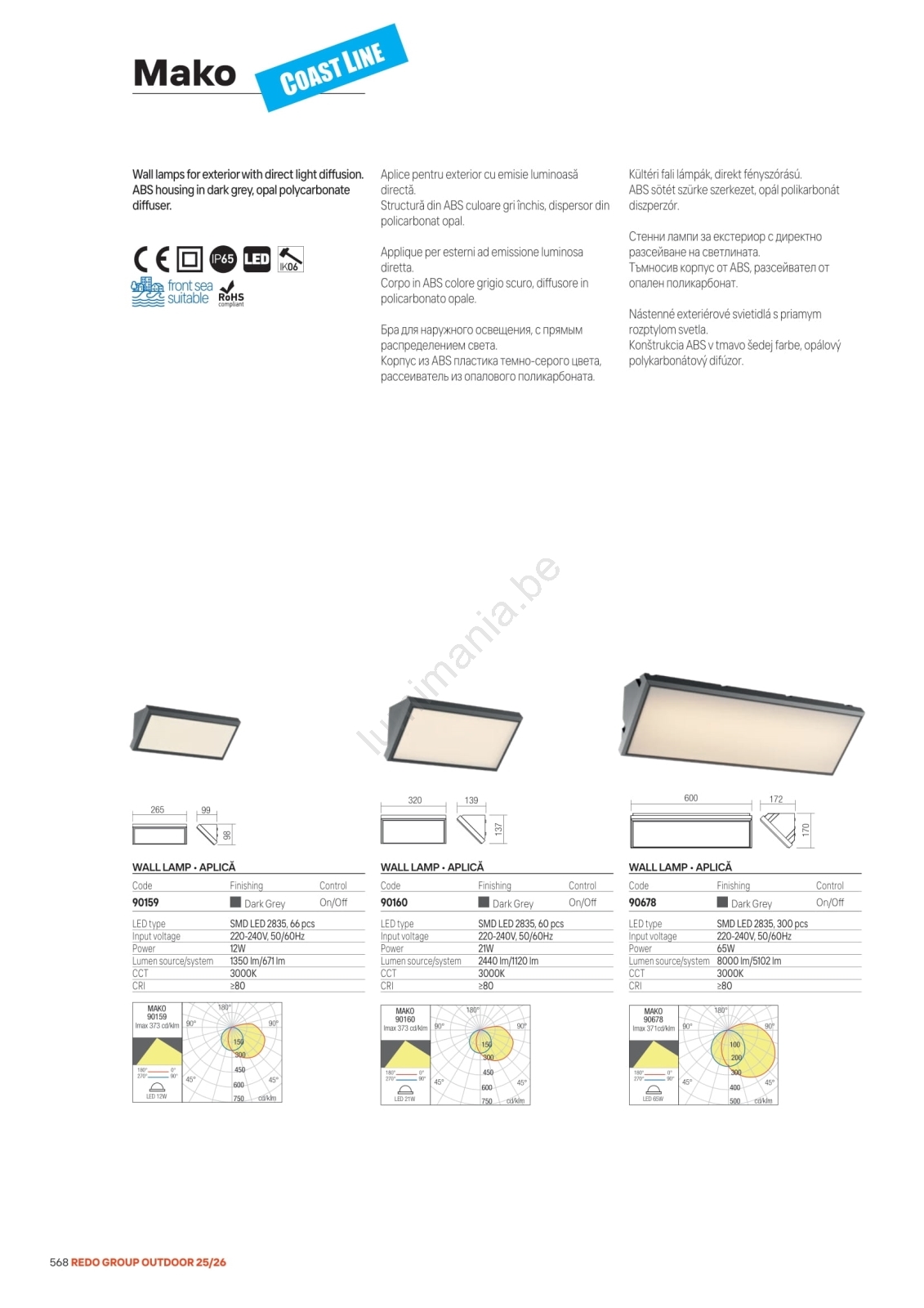 Redo 90678 - Applique murale d'extérieur LED MAKO LED/65W/230V 3000K IP65 anthracite