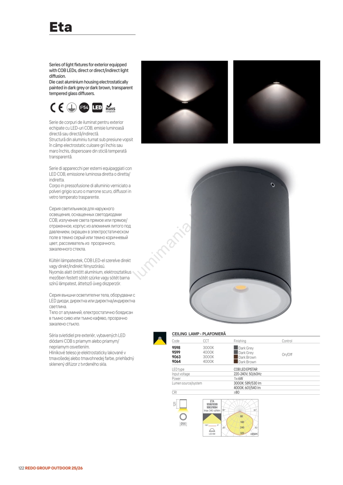 Redo 9596 - Applique murale d'extérieur LED ETA LED/6W/230V 3000K IP54 marron