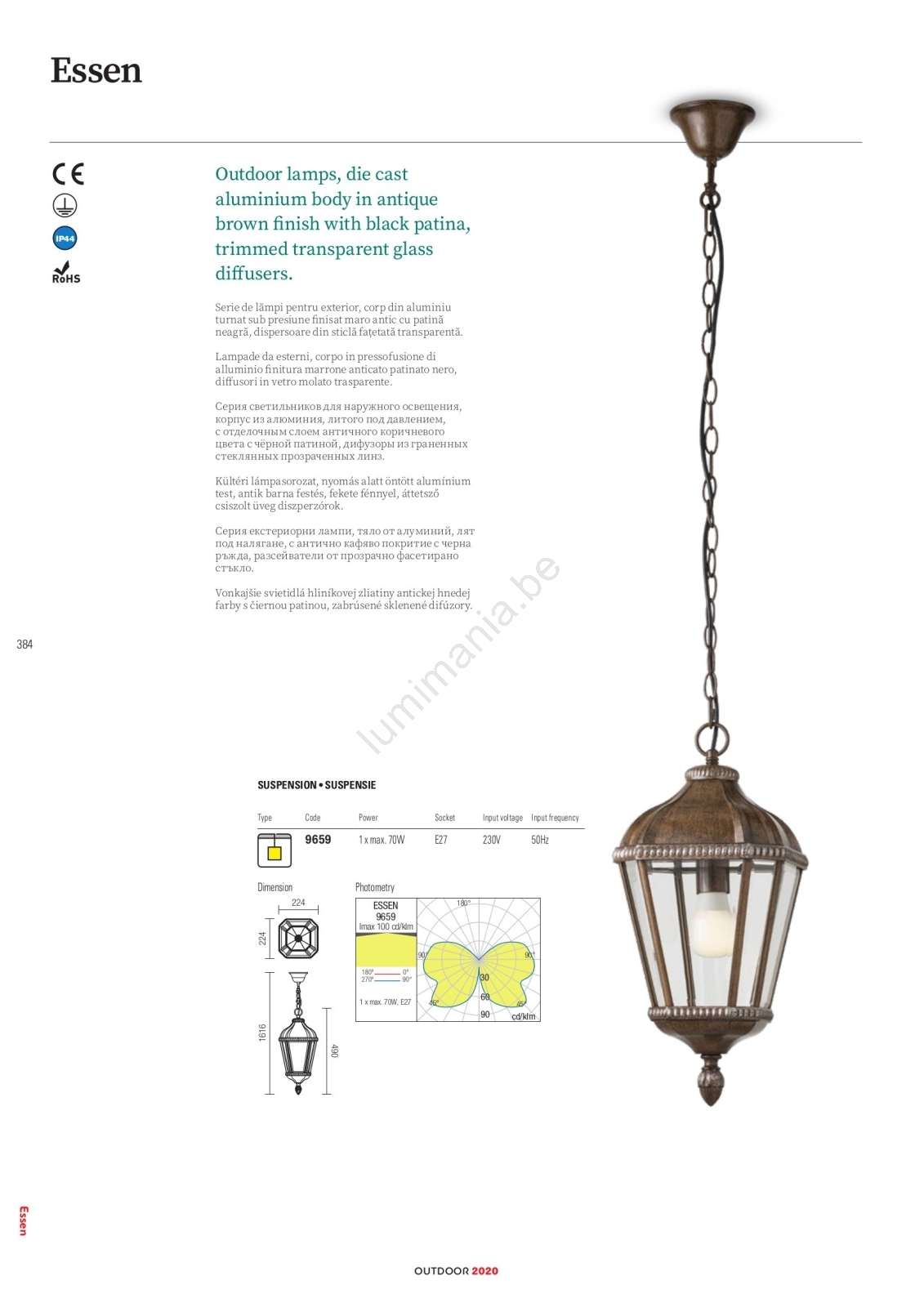Redo 9656 - Applique murale extérieure ESSEN 1xE27/70W/230V IP44 marron/patine caractérise un design agréable et fonctionnel.  Une ampoule à culot E27 convient pour ce luminaire. Ici, vous pouvez acheter d'autres ampoules à des prix avantageux. Vous aurez un ajout intéressant dans votre intérieur.