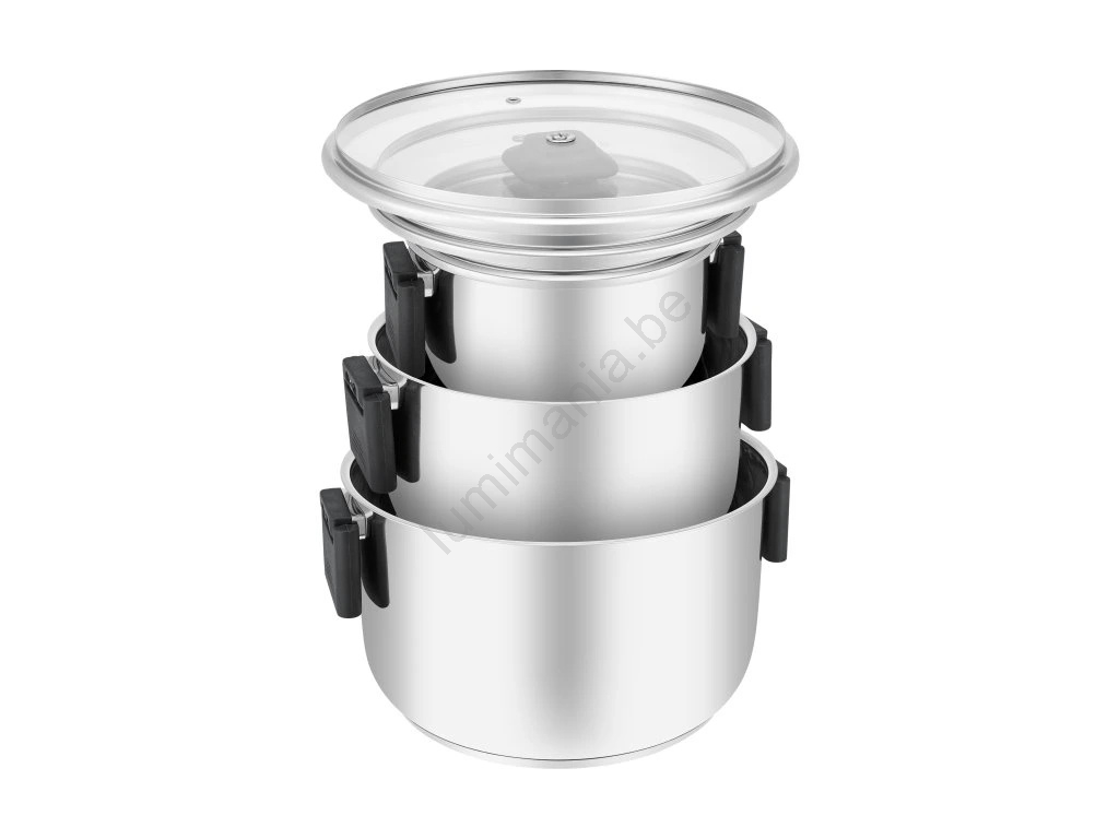 • Les casseroles sont fabriquées en acier inoxydable 18/10 de première qualité, très résistant.