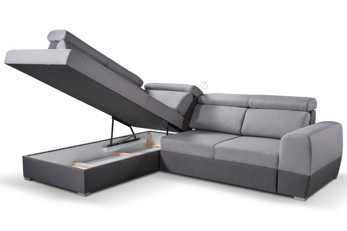 Canapé d'angle convertible en L avec rangement MATRIX gris, version gauche