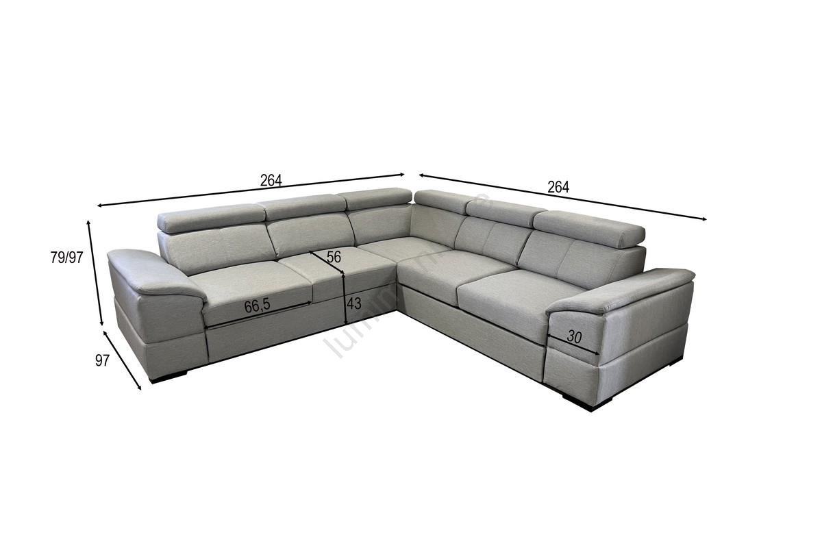 Canapé d'angle convertible réversible avec coffre de rangement GRANADA, gris