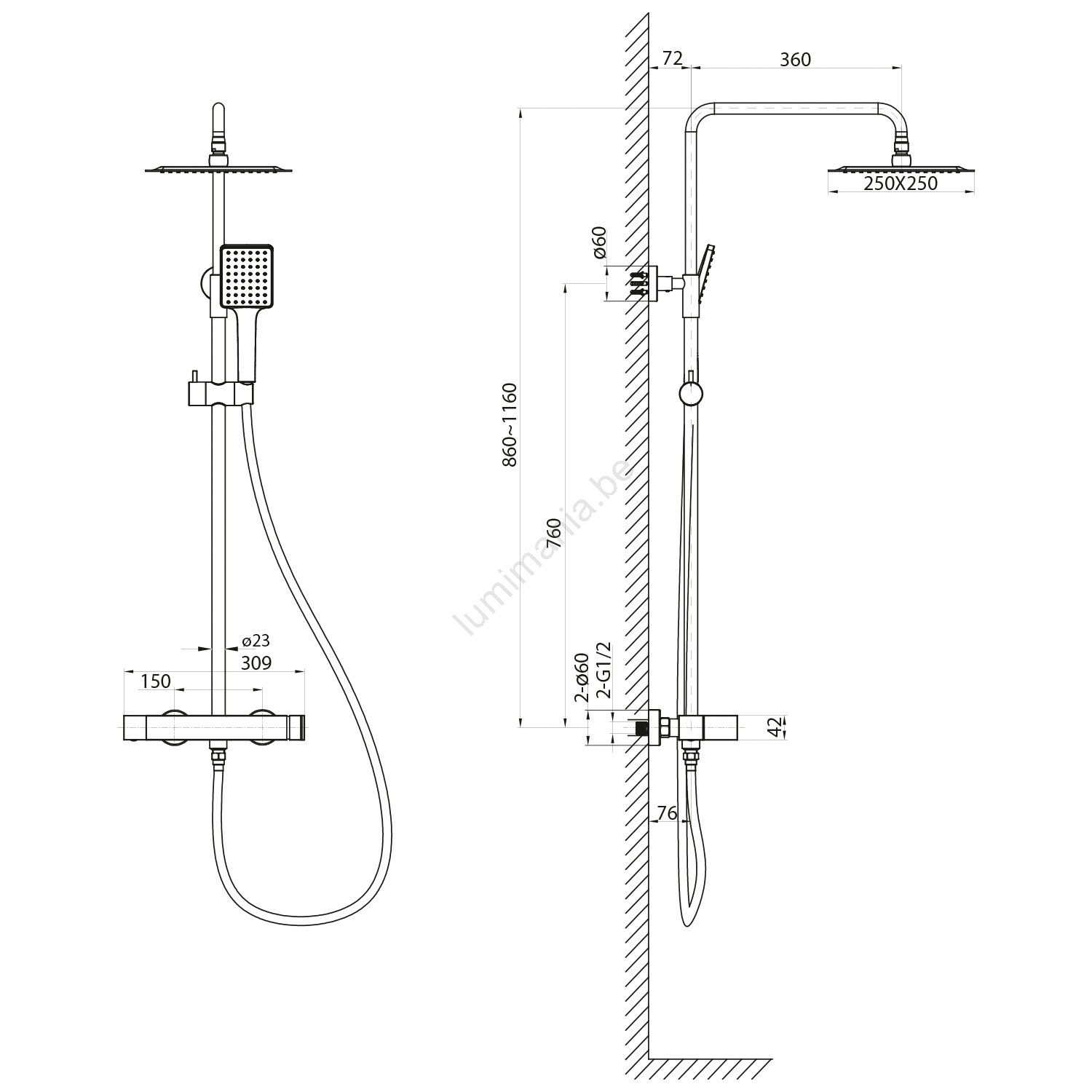 Sapho - Ensemble de douche avec mitigeur CUBEMIX, chrome brillant