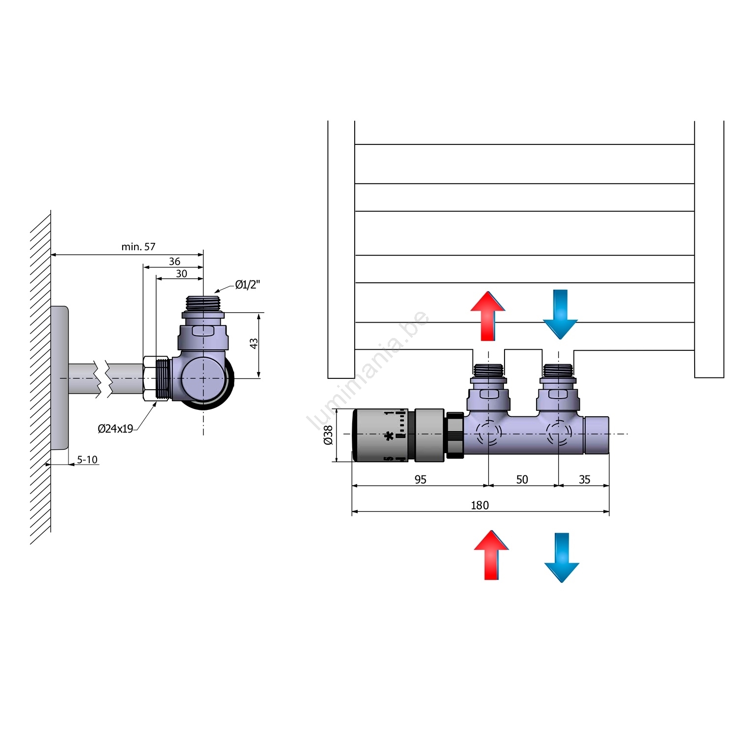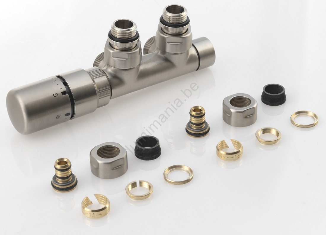 Sapho - Kit thermostatique de raccordement pour montage central TWIN gauche / inox mat