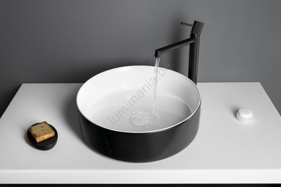 • La finition noire mate élégante s'intègre parfaitement à tout intérieur de salle de bains.