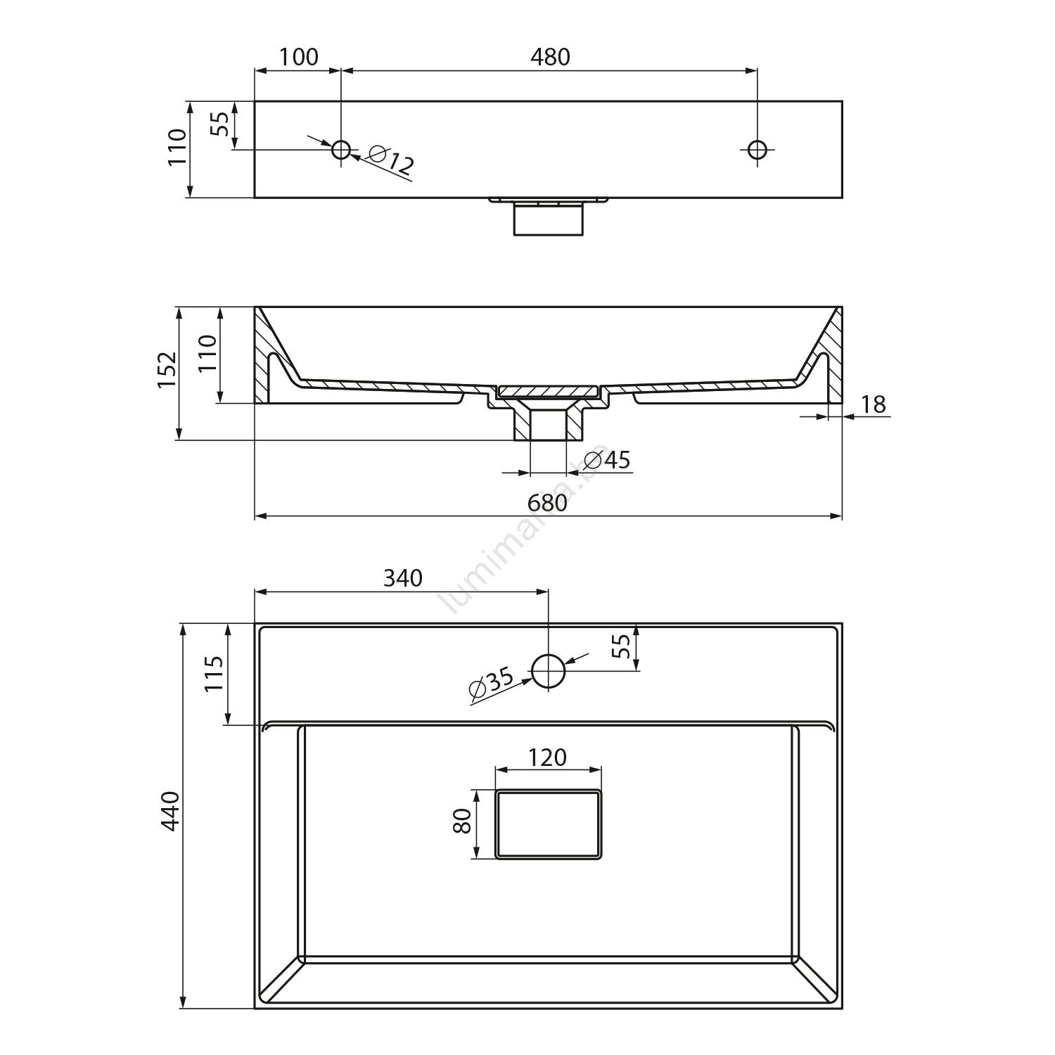 • Il présente des dimensions de 680x440 mm et une hauteur de 110 mm.