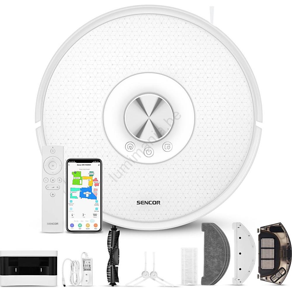 • Vous pouvez le contrôler via le bouton sur l'aspirateur, la télécommande ou via l'application Sencor HOME (compatible iOS et Android) via Wi-Fi.