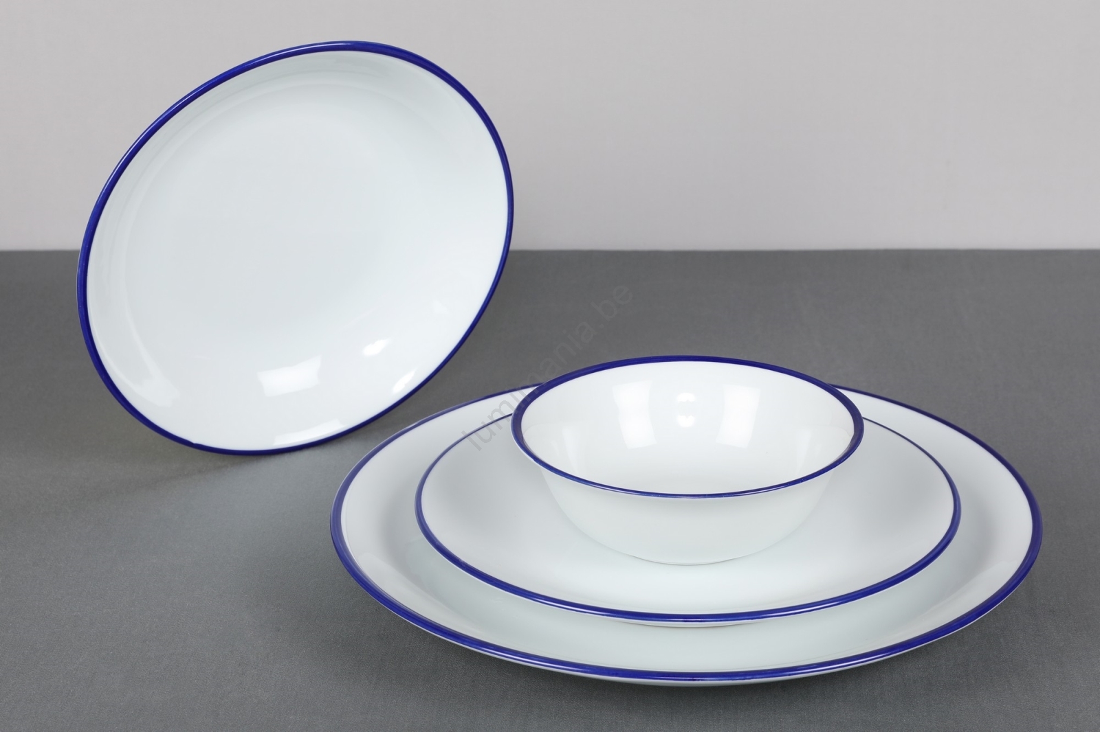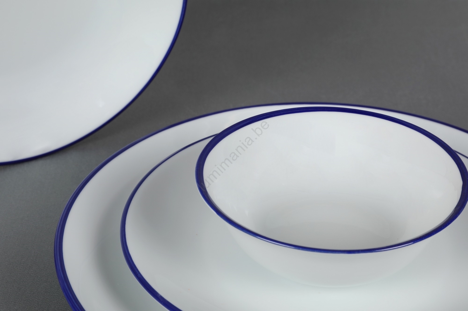 Service de table 24 pièces en porcelaine, blanc et bleu