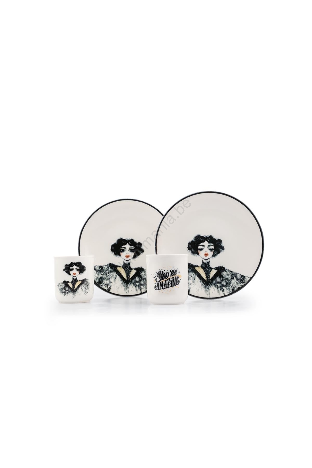 Service de table 4 pièces en porcelaine, noir/blanc