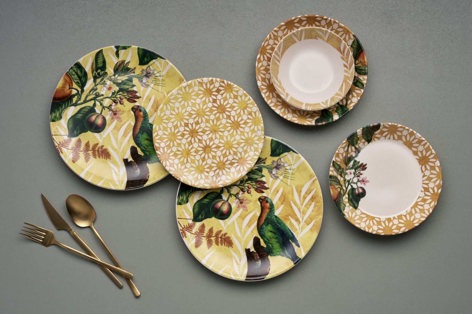 Service de vaisselle 24 pièces jaune/verte/blanche/céramique