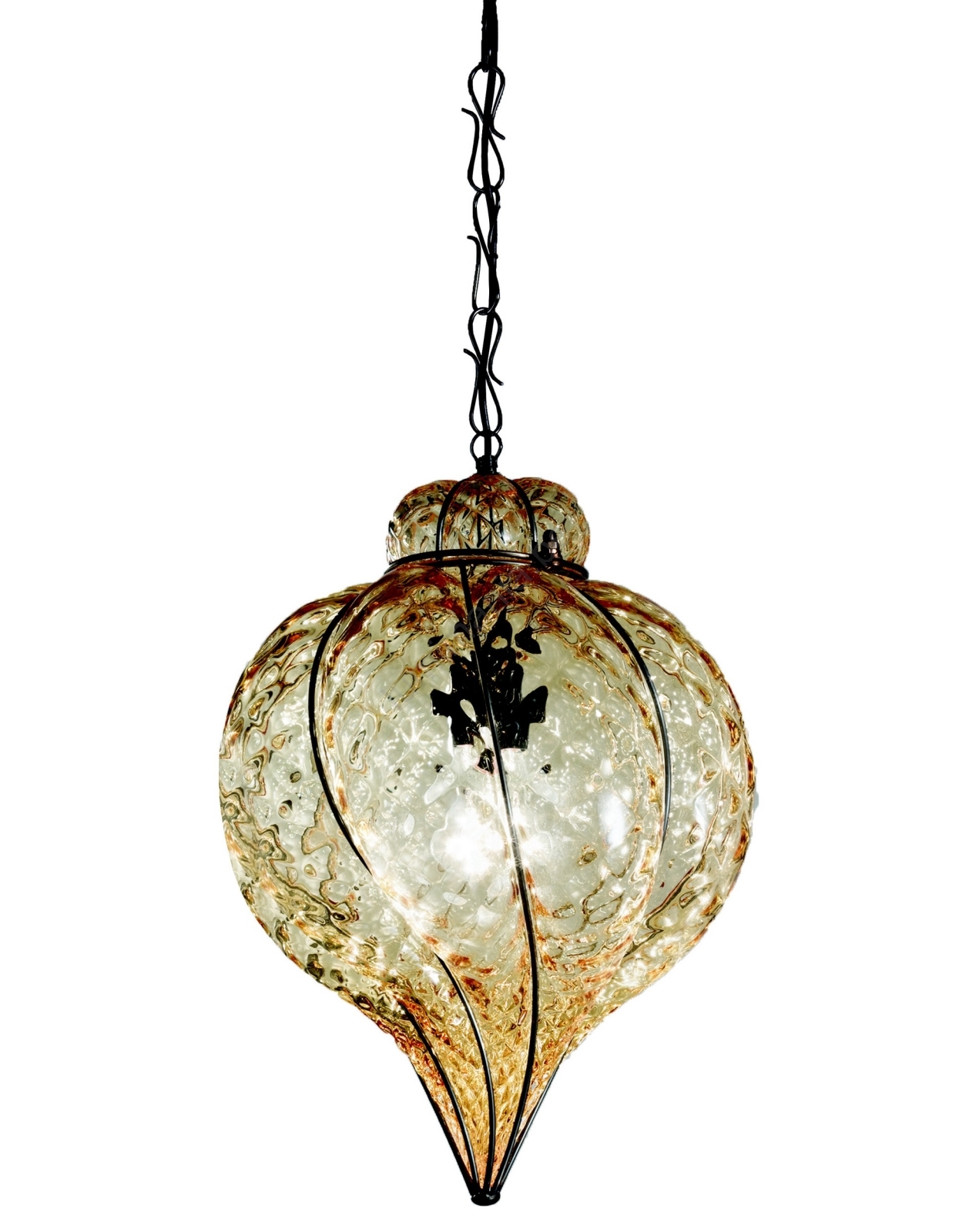 SIRU - Suspension chaîne GOCCIA 1xE27/60W/230V pr.25 cm beige/marron Verre vénitien