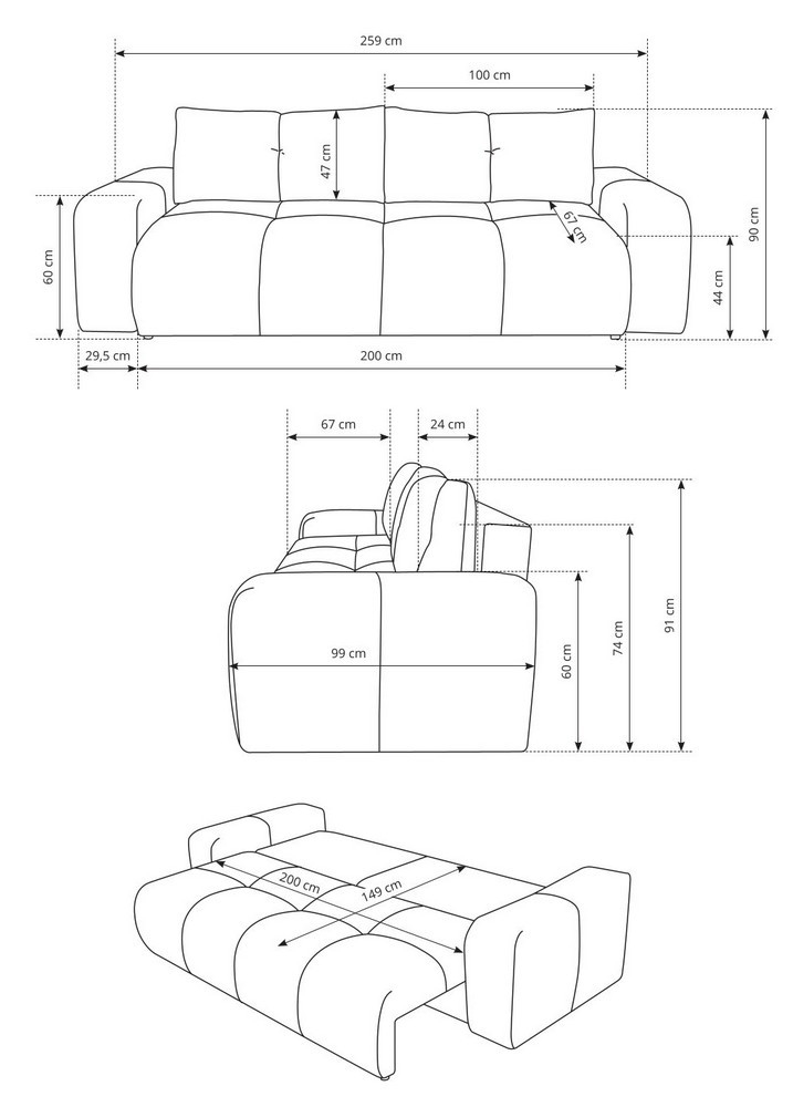 • Le canapé dispose d'un espace de rangement spacieux pour ranger la literie et d'autres articles saisonniers.