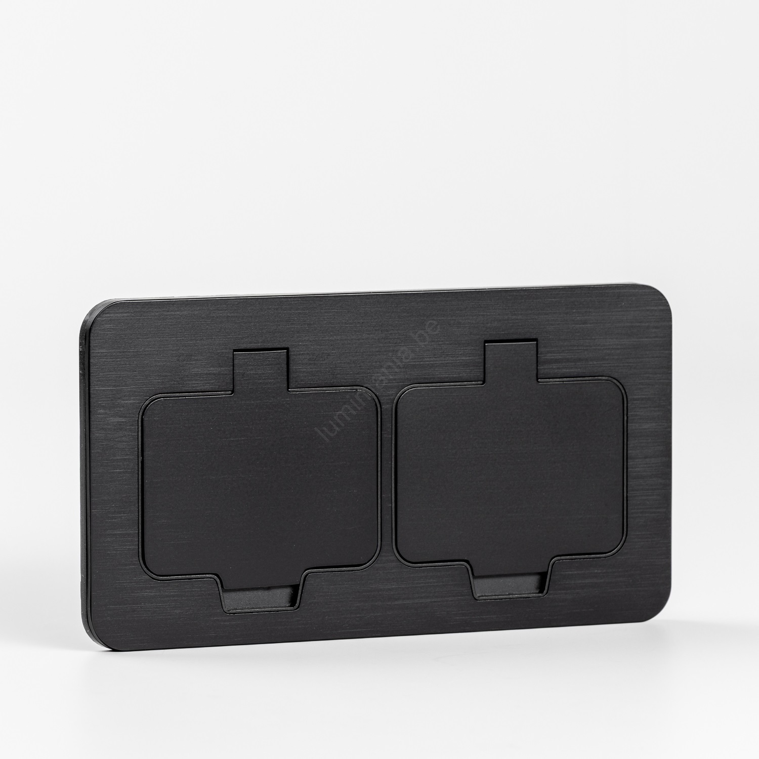 Prise double encastrée extérieure IP55 noire rectangulaire