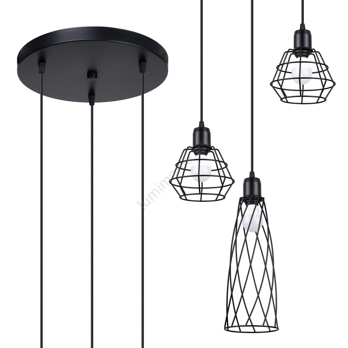 Suspension filaire SUBA 3xE27/15W/230V noir caractérise un design agréable et fonctionnel.  Une ampoule à culot E27 convient pour ce luminaire. Ici, vous pouvez acheter d'autres ampoules à des prix avantageux. Vous aurez un ajout intéressant dans votre intérieur.