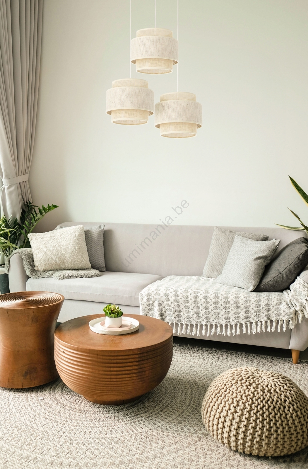 • Suspension BOHO sur câble 3xE27/60W/230V crème/jute