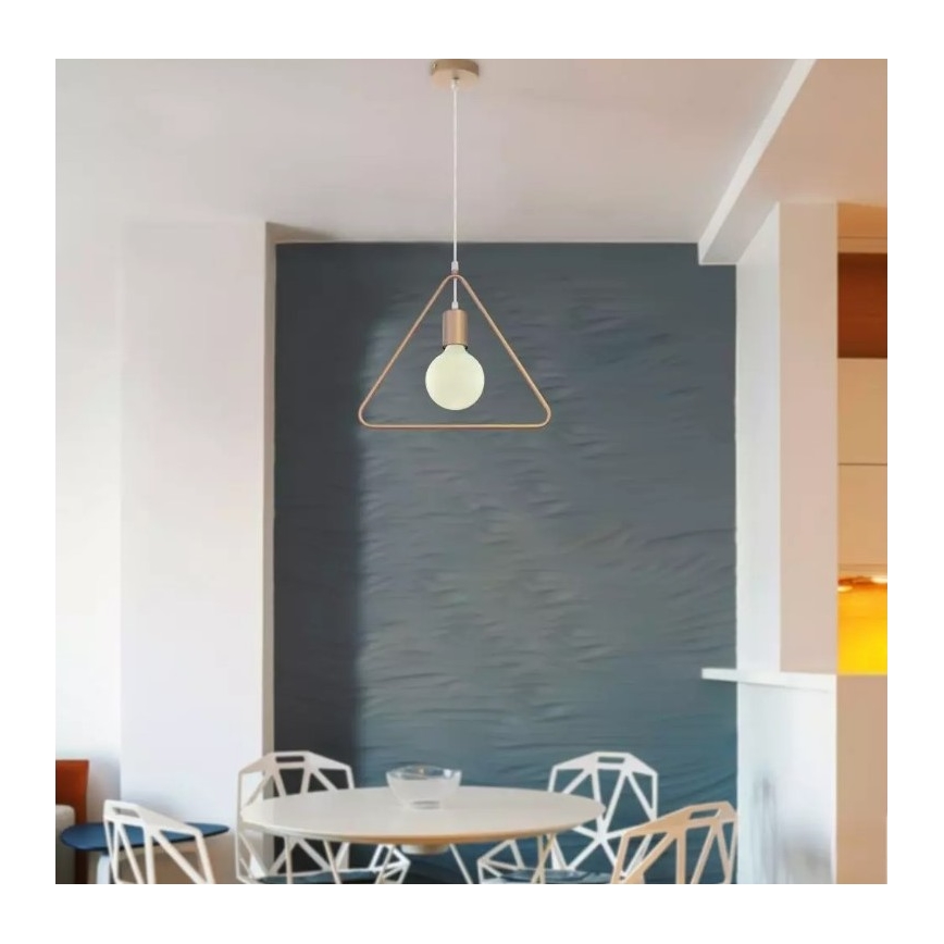 Suspension filaire 1xE27/60W/230V triangle caractérise un design agréable et fonctionnel.  Une ampoule à culot E27 convient pour ce luminaire. Ici, vous pouvez acheter d'autres ampoules à des prix avantageux. Vous aurez un ajout intéressant dans votre intérieur.