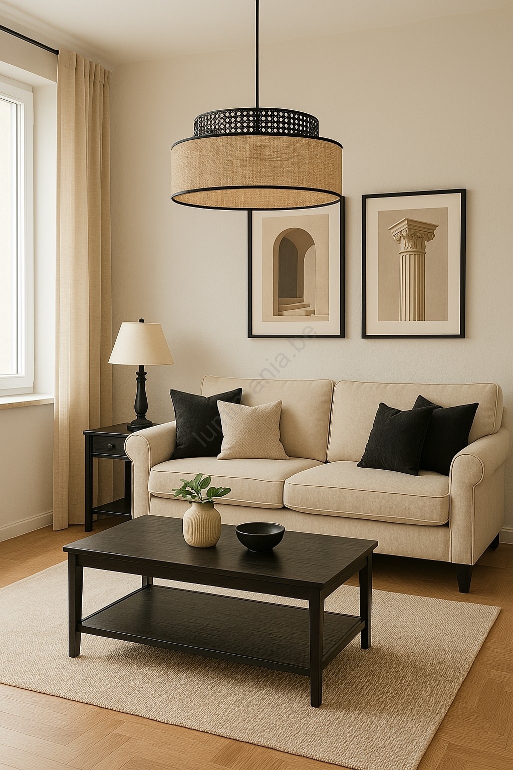 • Suspension filaire BOHO 1xE27/60W/230V d. 40 cm noir/rotin