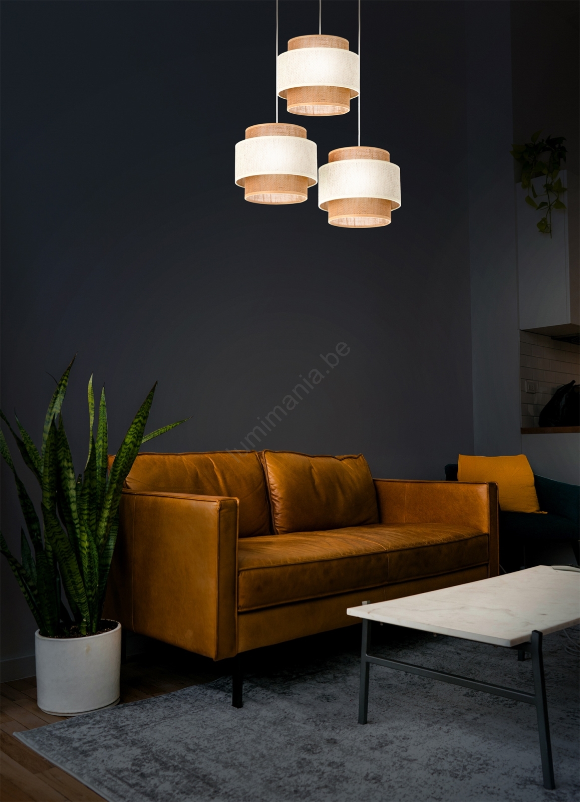 Suspension sur câble BOHO 3xE27/60W/230V crème/jute caractérise un design agréable et fonctionnel.  Une ampoule à culot E27 convient pour ce luminaire. Ici, vous pouvez acheter d'autres ampoules à des prix avantageux. Vous aurez un ajout intéressant dans votre intérieur.