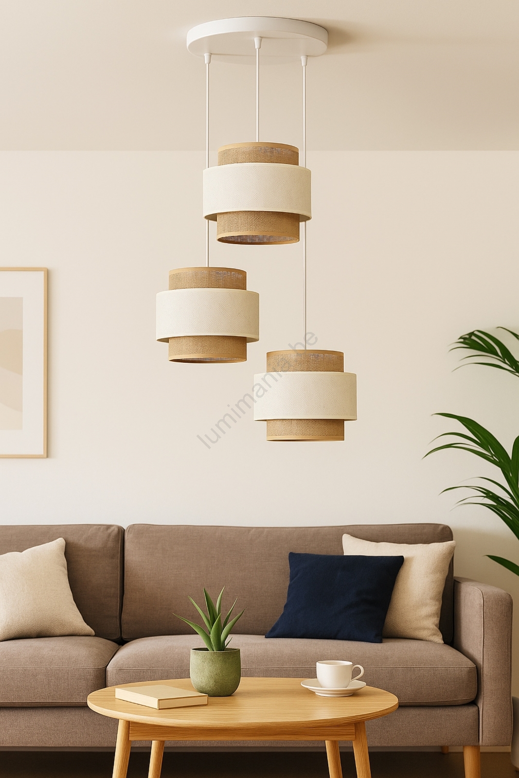 • Suspension BOHO sur câble 3xE27/60W/230V crème/jute