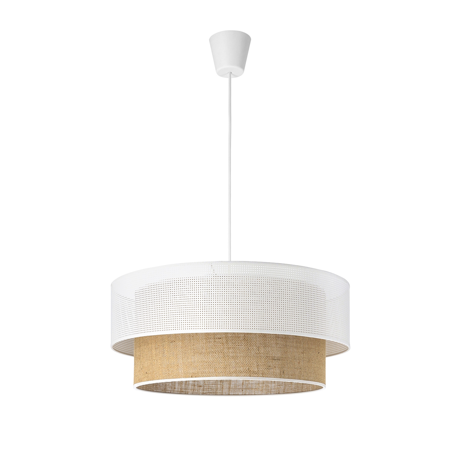 Suspension sur câble BORHO 1xE27/60W/230V Ø 40 cm blanc/jute caractérise un design agréable et fonctionnel.  Une ampoule à culot E27 convient pour ce luminaire. Ici, vous pouvez acheter d'autres ampoules à des prix avantageux. Vous aurez un ajout intéressant dans votre intérieur.