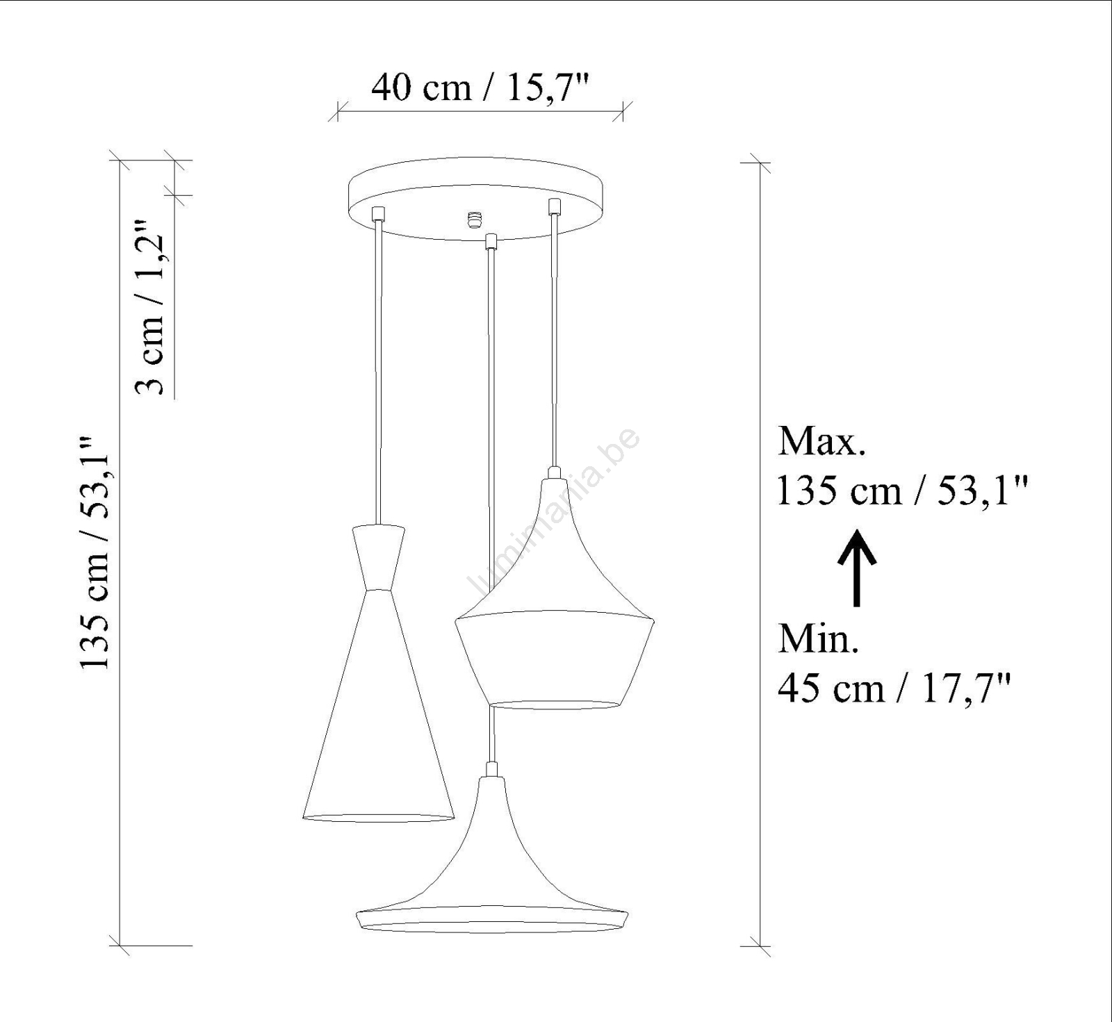 • Suspension sur câble TOM 3xE27/40W/230V verte