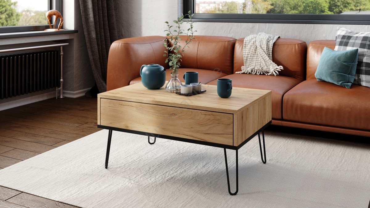 • Table basse avec plateau relevable et étagère HALIJA chêne craft/noir