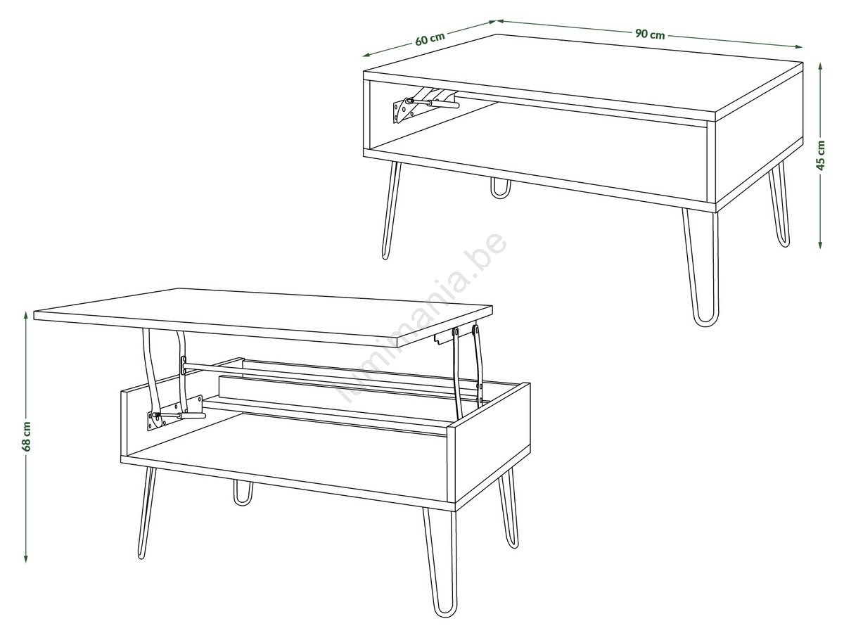 • Table basse avec plateau relevable et étagère HALIJA chêne/noir