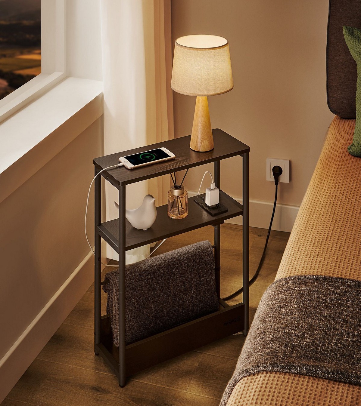 Table d'appoint ROD noire avec prise électrique intégrée et ports USB