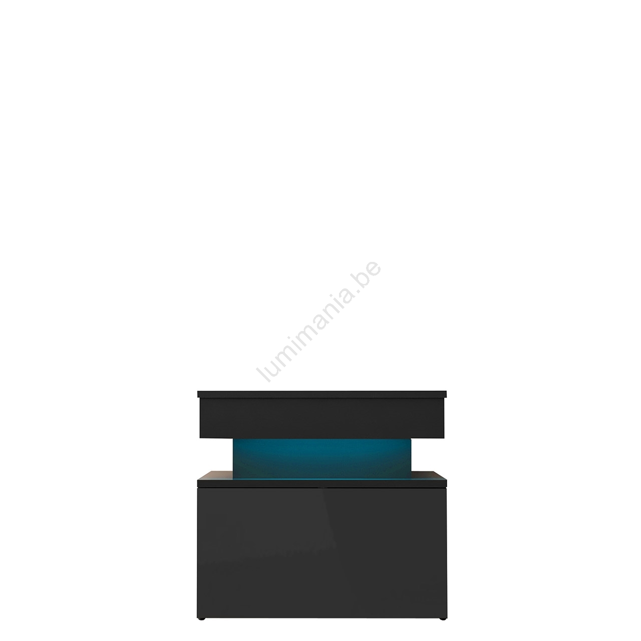 Table de chevet GLOSSA avec éclairage LED 51x55 cm, noir / noir laqué