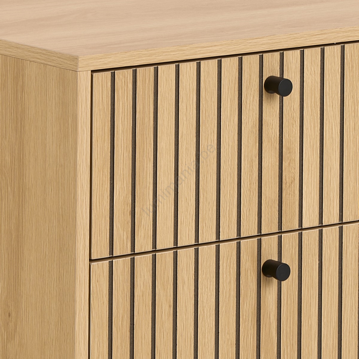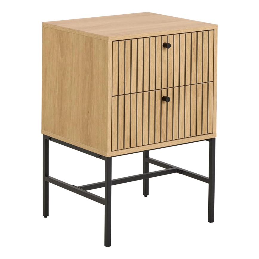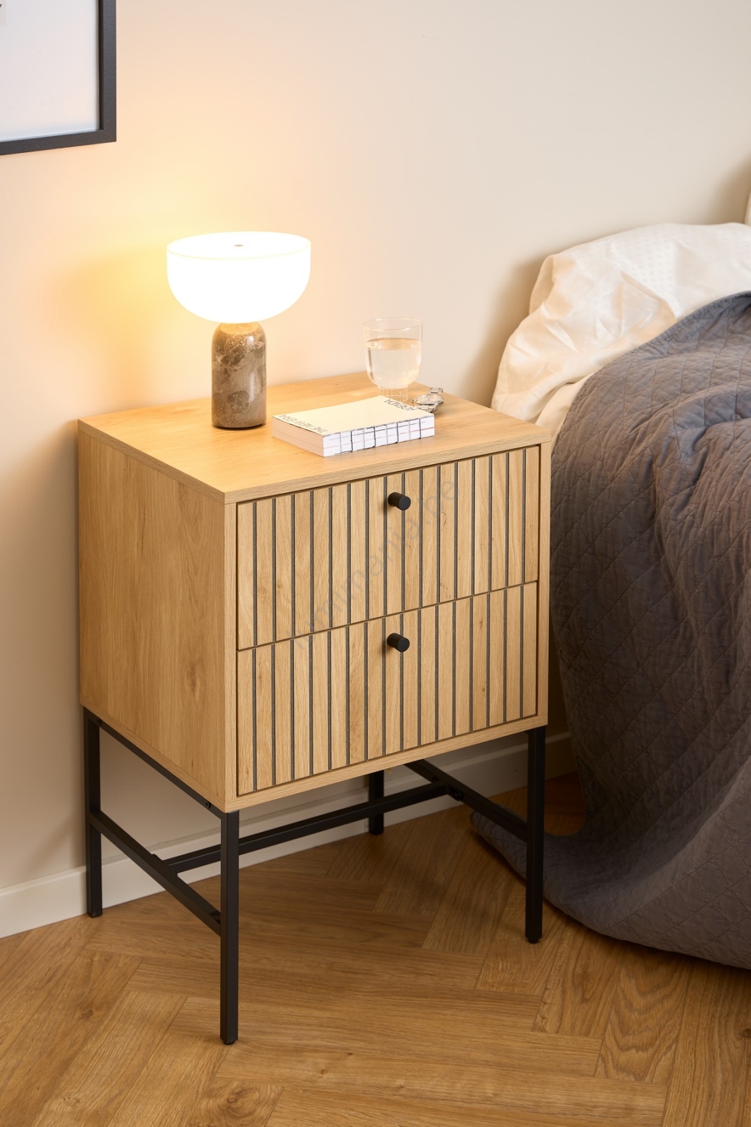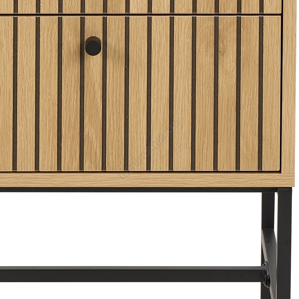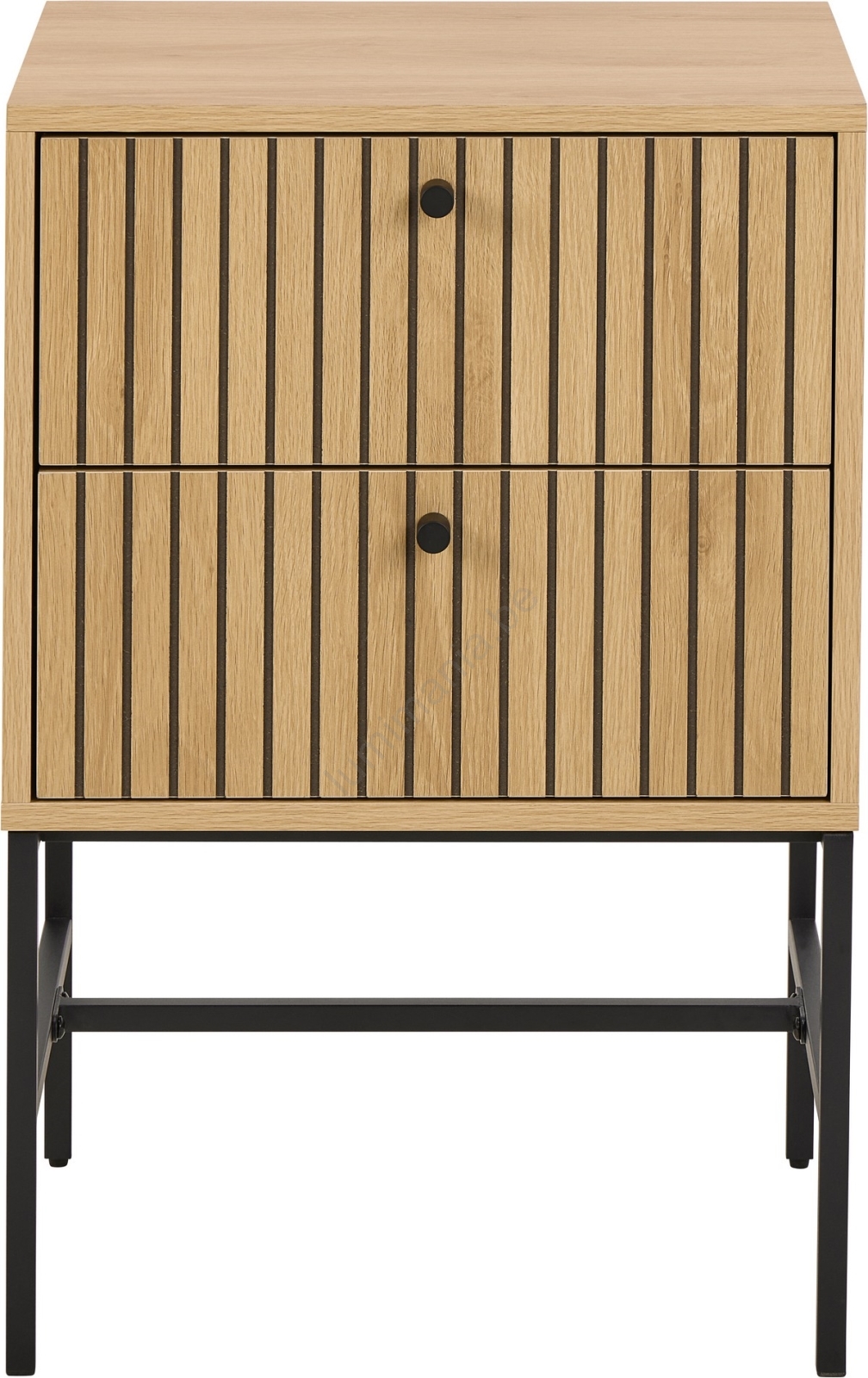 • Cette table de chevet au rendu chêne, dotée d'une façade à lames, apportera style et praticité à votre intérieur.
